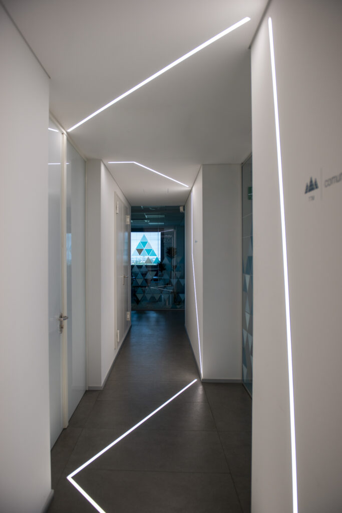 Sistema modulare per illuminazione diretta, diffusa, composto da profili vuoti in estruso di alluminio verniciato o anodizzato disponibili in lunghezze predefinite o ordinabili a misura disponibili nelle versioni a parete, soffitto, sospensione, incasso rasato a scomparsa totale e da incasso in angoli parete interni o esterni. Testate di chiusura laterali con sistema Light Proof e di schermo diffondente in PC opalino bianco. Da integrare con sorgenti lineari LED. Da completare con staffe di fissaggio o cavi di sospensione. Grado di protezione IP40 o IP43 a seconda della zona d’installazione.