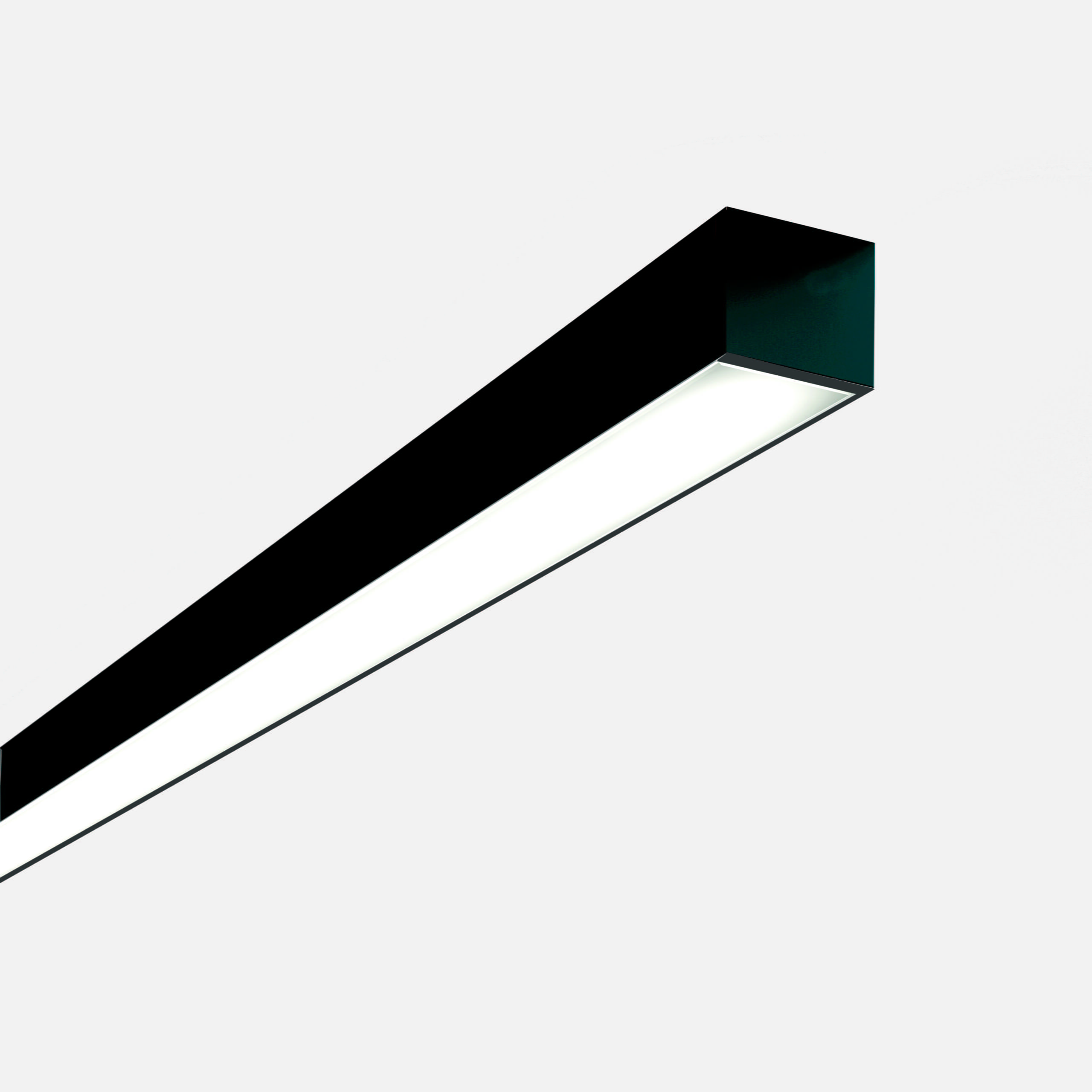 Serie di apparecchi da soffitto, per illuminazione diretta diffusa. Sorgenti lineari LED da completare con alimentatore remoto 24Vdc. Corpo in estruso di alluminio, finitura verniciata, completo di schermo diffondente in policarbonato opalino bianco. Testate di chiusura laterali con sistema Light Proof. Grado di protezione IP40 o IP65.