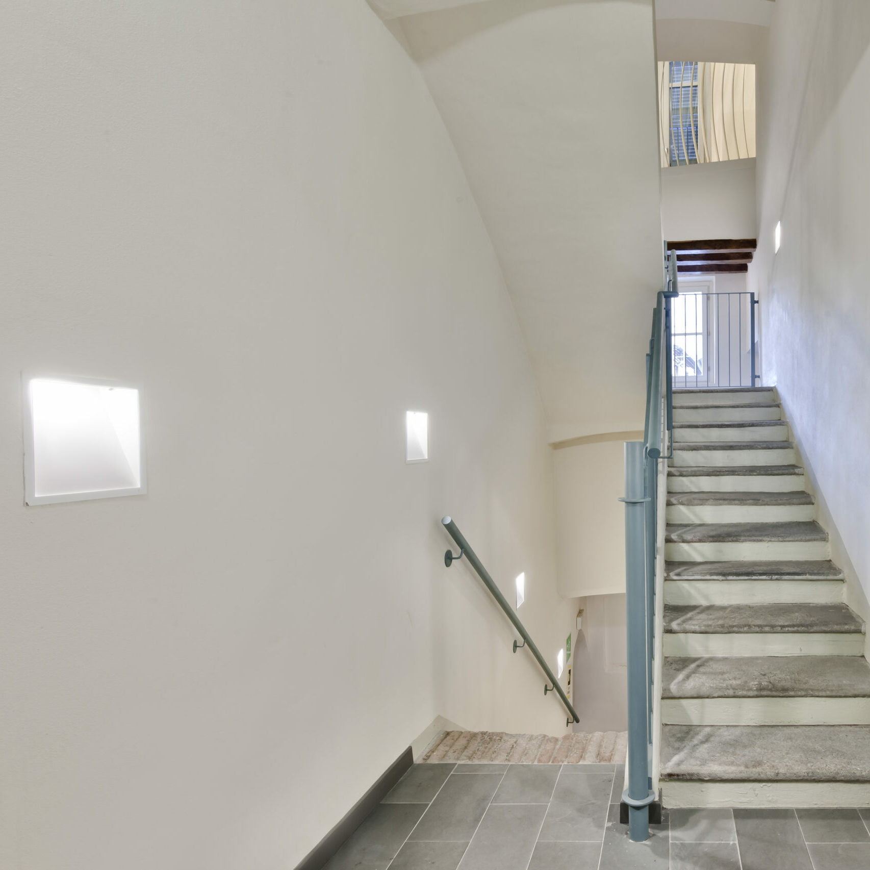 Apparecchio di illuminazione ad incasso a parete/soffitto per interni a luce diretta o indiretta, corpo in metallo e particolari meccanici in acciaio. Cornice in metallo con finitura verniciata, schermi in protezione in vetro temperato. Cablaggi predisposti per lampade alogene, fluorescenti e a scarica con alimentatori elettromeccanici o elettronici. Disponibilità di casseforma per pareti e soffitti in laterizio o calcestruzzo, kit riflettore in alluminio preanodizzato ad alta efficienza. Su richiesta kit per cablaggio emergenza.