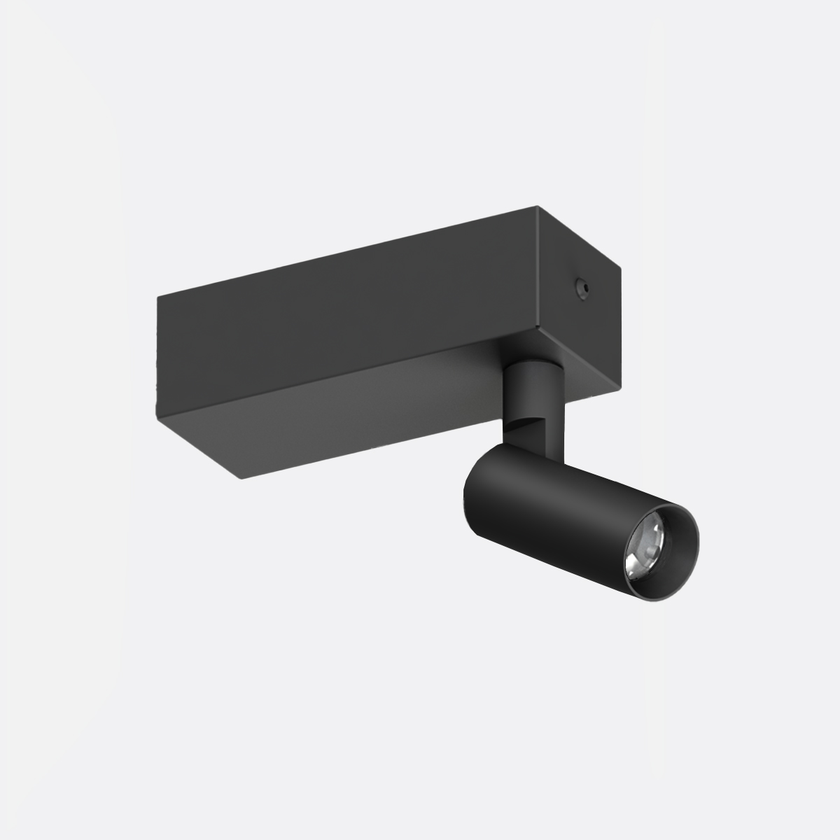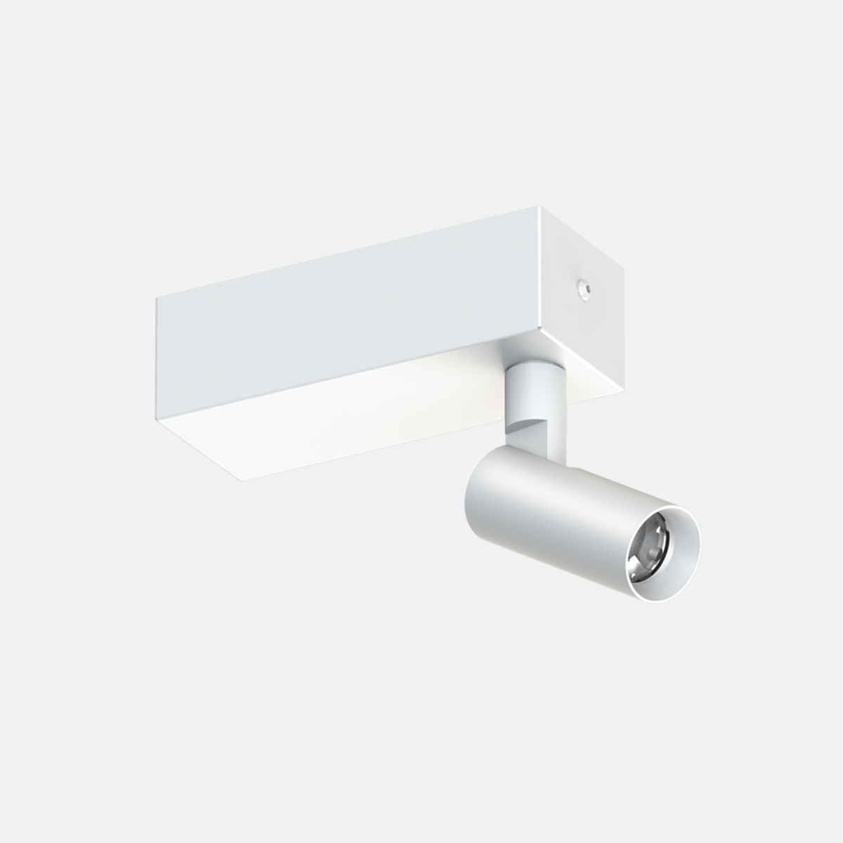 Proiettore da soffitto / parete 500 mA indoor, realizzato in estruso di alluminio 6060, completo di led 5,7W fascio 27°, indice di resa cromatica CRI 94, ottica ad alto rendimento, base rettangolare dotata di snodo di rotazione e staffa in acciaio, alimentatore incluso.