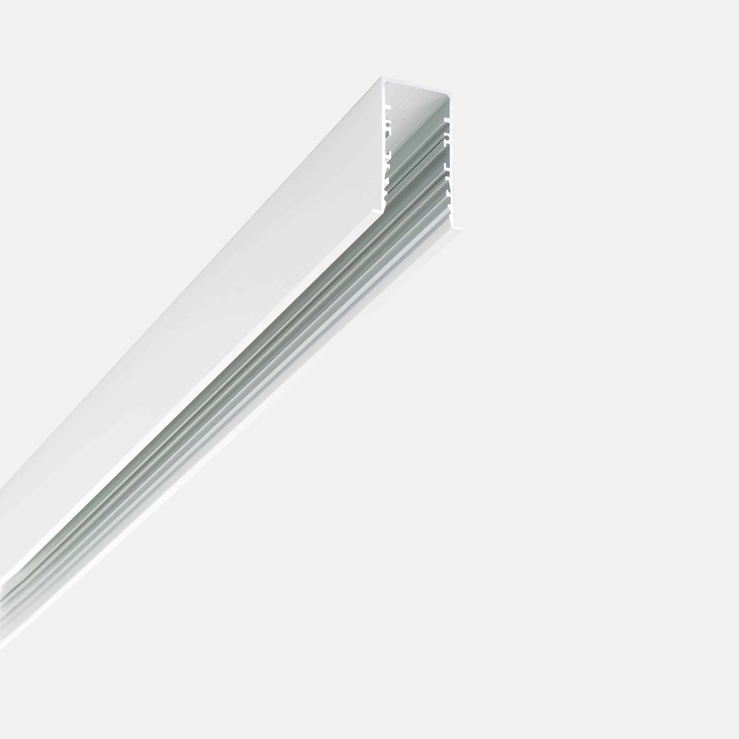 Sistema modulare per illuminazione diretta, diffusa d'accento e wallwasher, composto da profili vuoti in estruso di alluminio verniciato o anodizzato 62x32 mm. di lunghezza predefinita o tagliabili a misura, disponibili nelle versioni a parete, soffitto, sospensione, incasso rasato a scomparsa totale trimless o a incasso con cornice di battuta super-slim larghezza 5 mm. Da integrare con sorgenti lineari LED, spot… leggi tutto