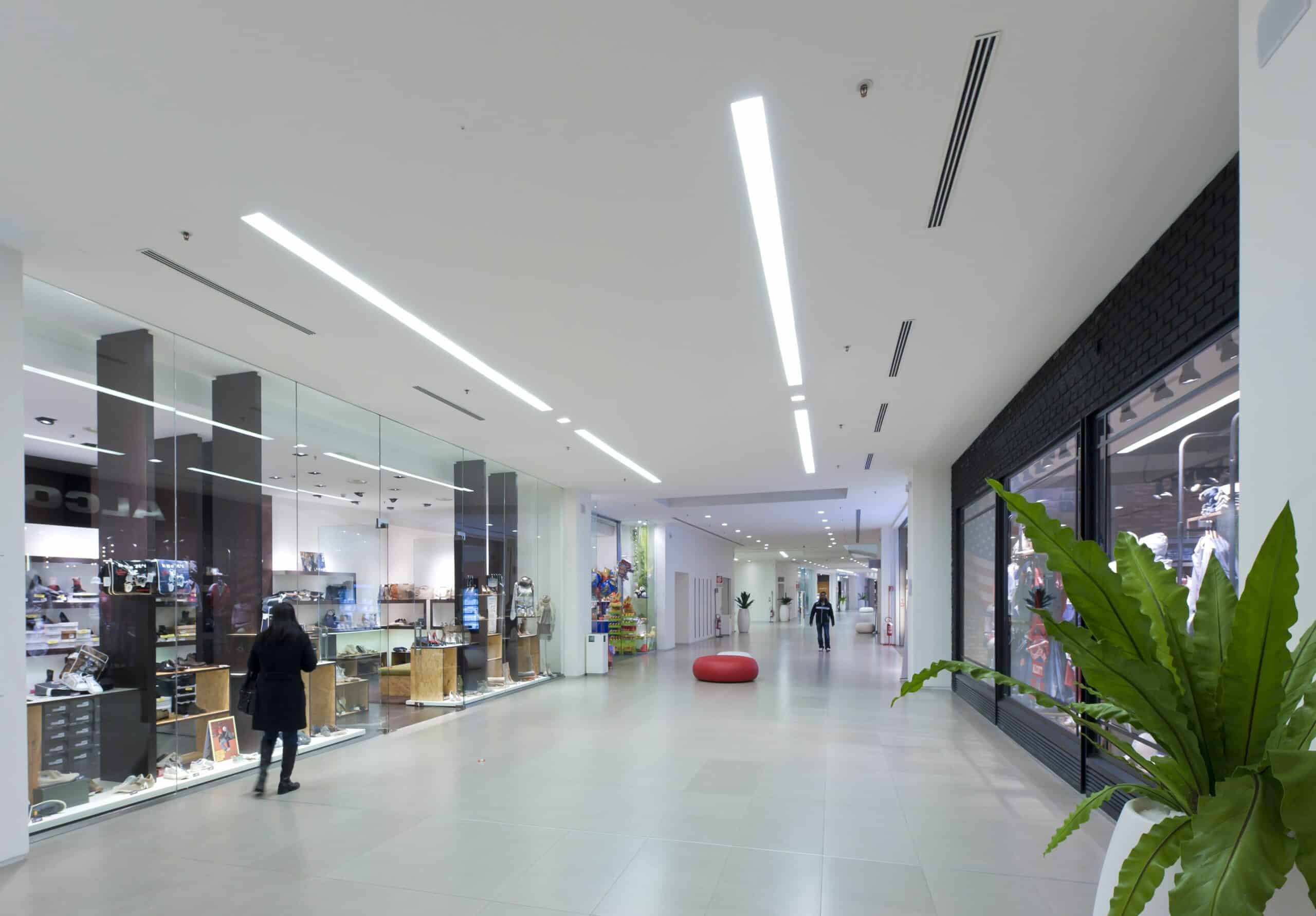 Il nuovo centro commerciale Conè collocato in provincia di Treviso e inaugurato il 25 Novembre 2010, con una superficie di oltre 10.000 mq ospita al suo interno, oltre al supermercato alimentare, 62 punti vendita variamente differenziati. L'impianto fotovoltaico installato sul tetto del centro commerciale fornisce la maggior parte dell'energia necessaria al suo funzionamento. Per l'illuminazione della vasta galleria e di tutte le parti comuni è stato utilizzato il sistema incassato GUIDE nella versione fluorescente dimmerabile, mentre per le luci d'accento e per gli ambienti comuni i prodotti della serie FILE, INCAS, INCAS V, NYX, MINIFRAME assolvono la loro funzione puntuale e minimalista. I prodotti della serie RIGO sono stati utilizzati per le aree scale e punti d’accesso ai parcheggi, anche questi ultimi illuminati con i prodotti Lucifero’s della serie INCAS.