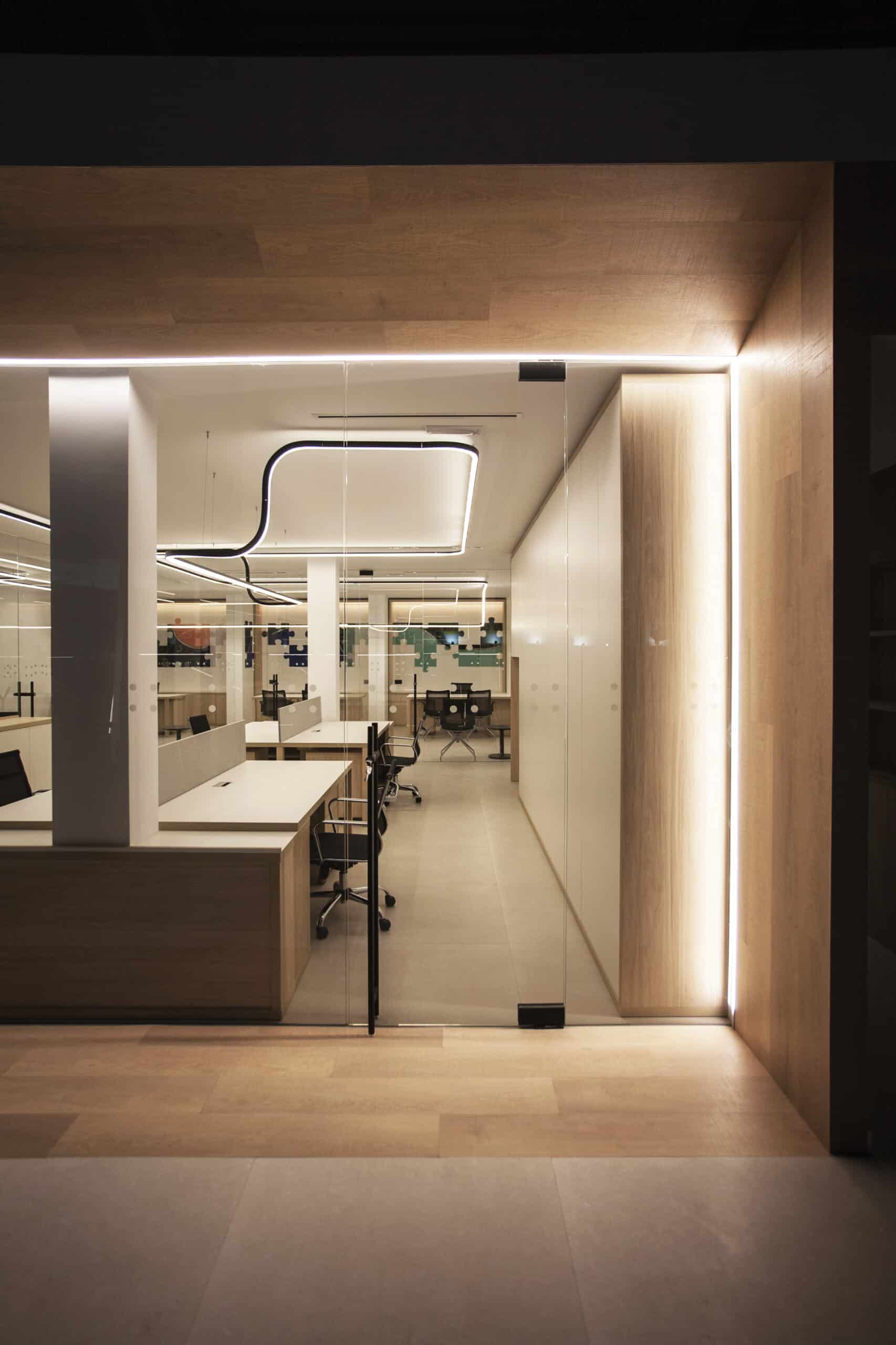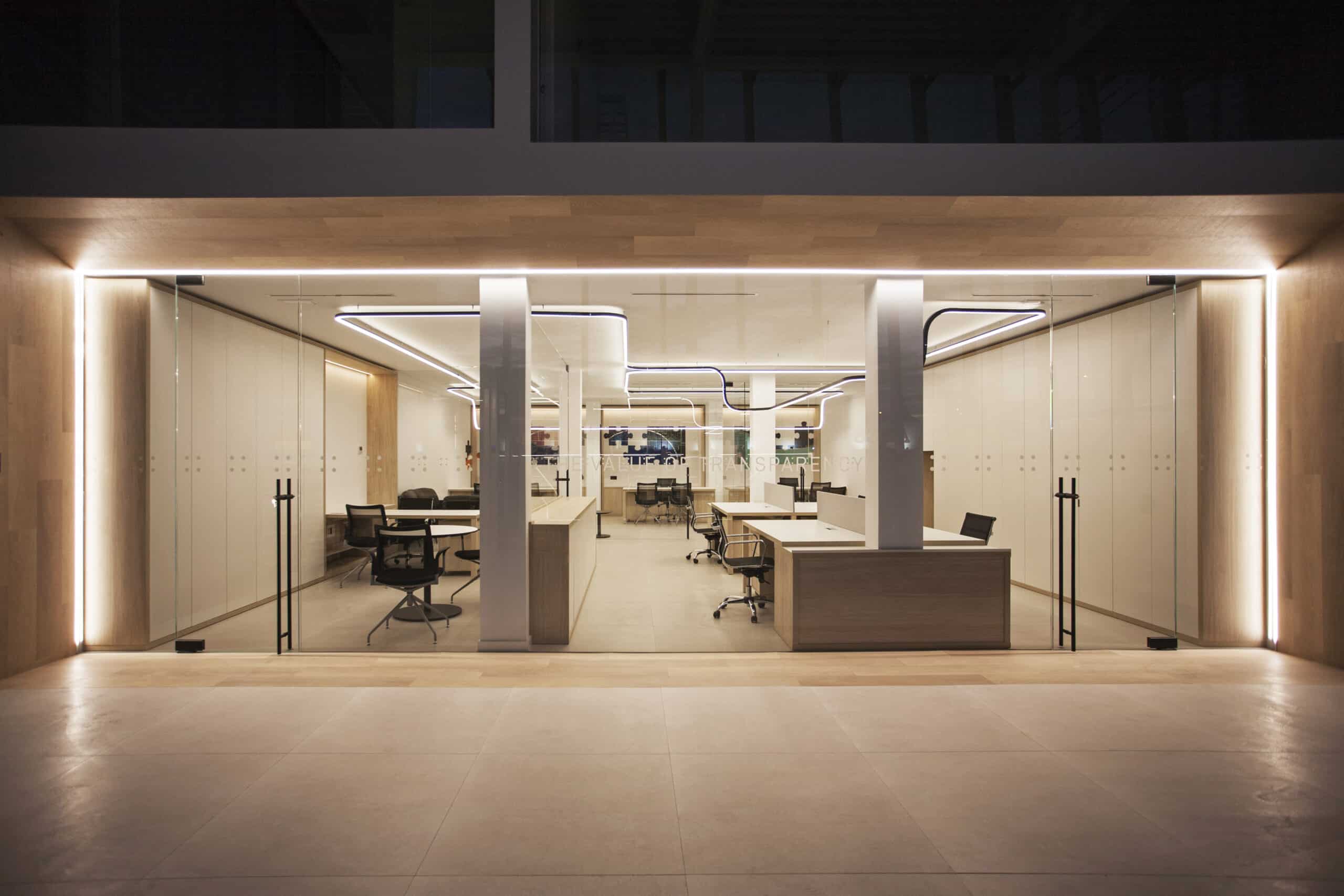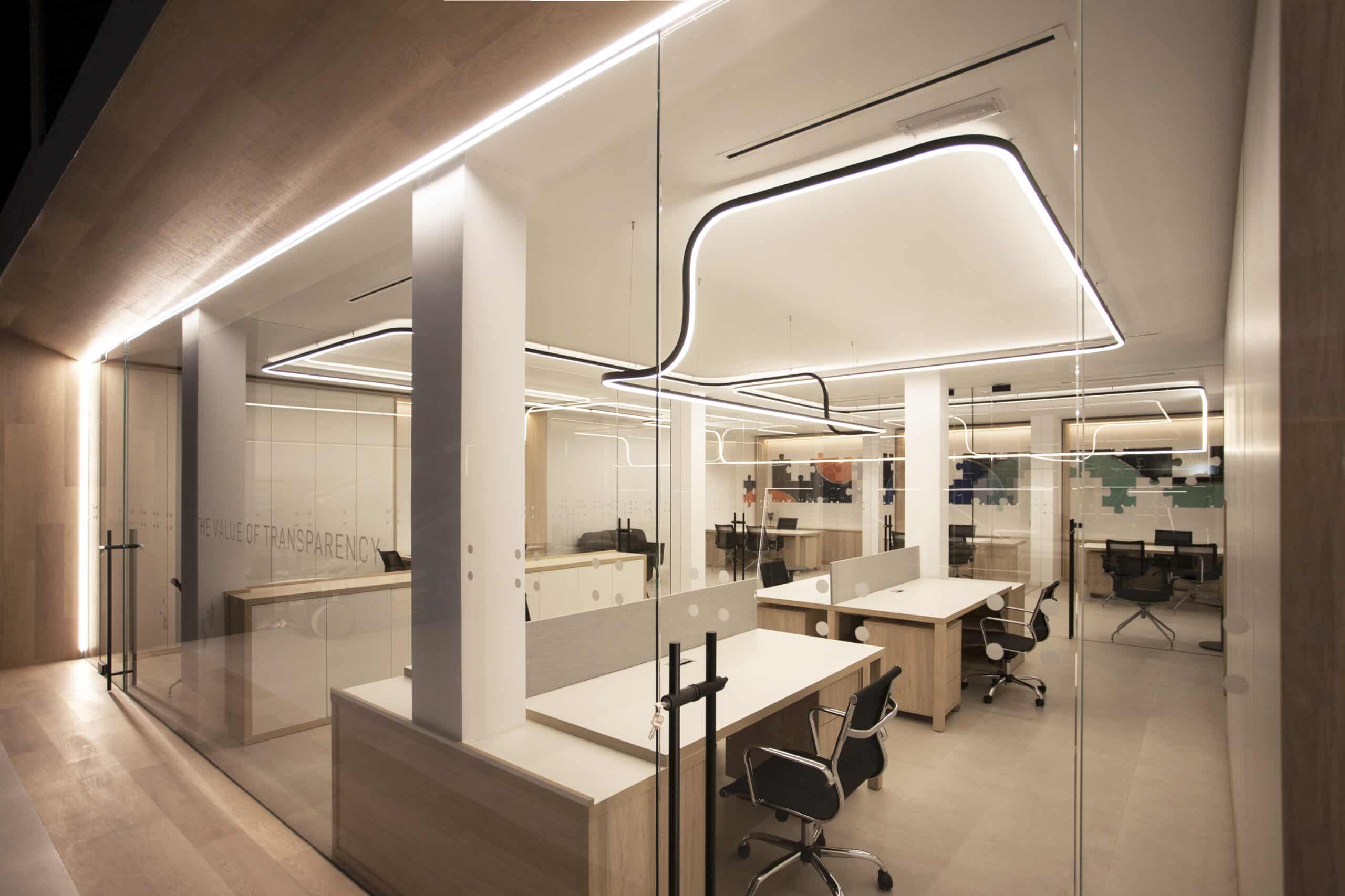 Il suo team professionale e dinamico affronta ogni progetto con velocità, adattabilità e sicurezza. Come da suo DNA ha affidato a Lucifero's, azienda italiana specializzata in illuminazione architettonica e su misura, la progettazione e la realizzazione dell'illuminazione per i nuovi uffici di Villena. Oscar Vidal Quist, Interior Designer, ha scelto la famiglia File Flex per l'illuminazione dello spazio, realizzando una sospensione senza limite di continuità visiva.